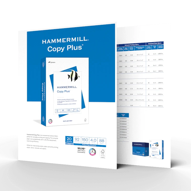 An economical paper that offers dependable performance on all office machines. To explore the options available with Copy Plus Printer Papers, download the sell sheet below.